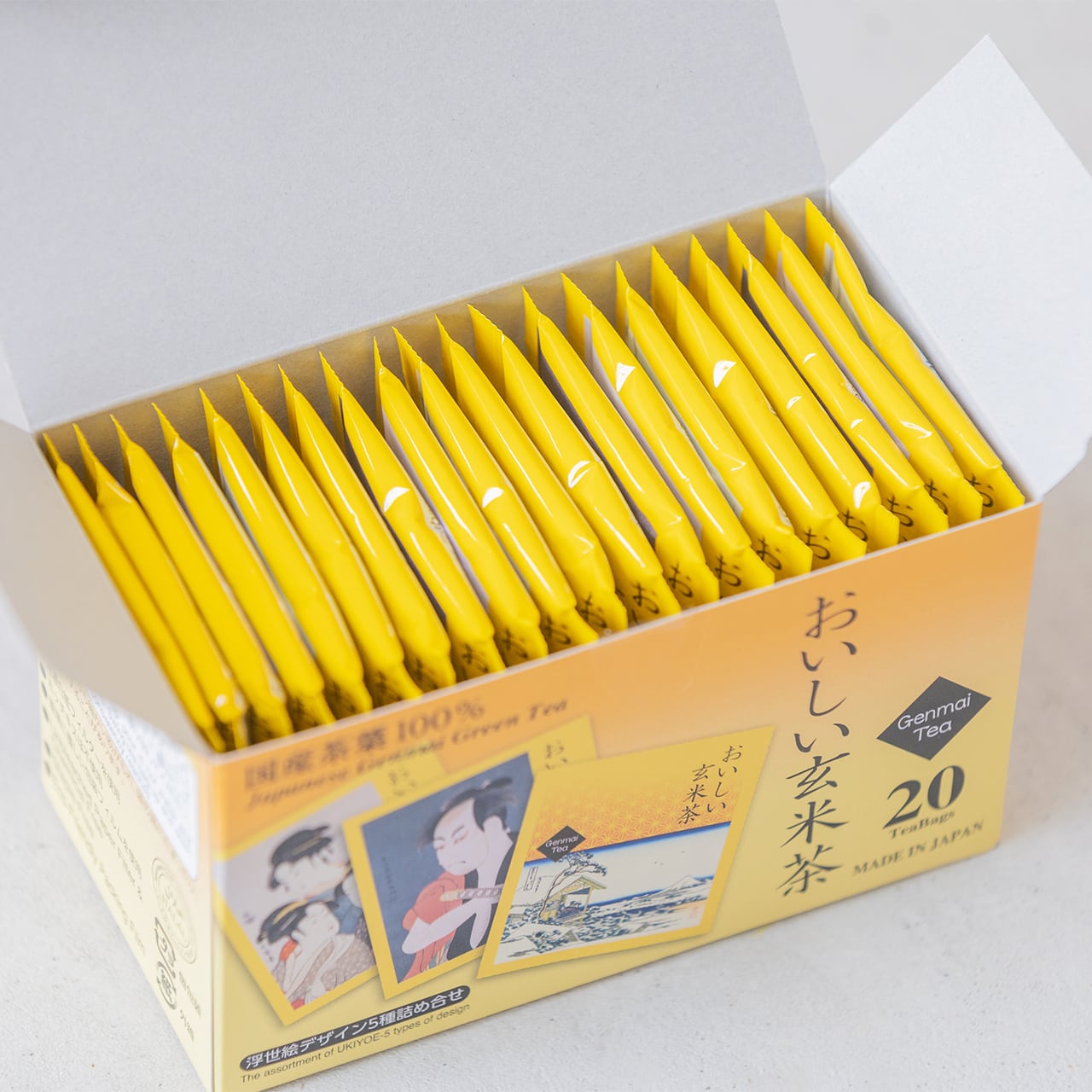 日本の伝統的な浮世絵をモチーフにしたパッケージは、まるでアート作品のよう。贈り物にも喜ばれる一品です。また環境にも優しい包装フィルムを使用しており、一杯用に個包装してありますので、手軽で便利にお楽しみいただけます。