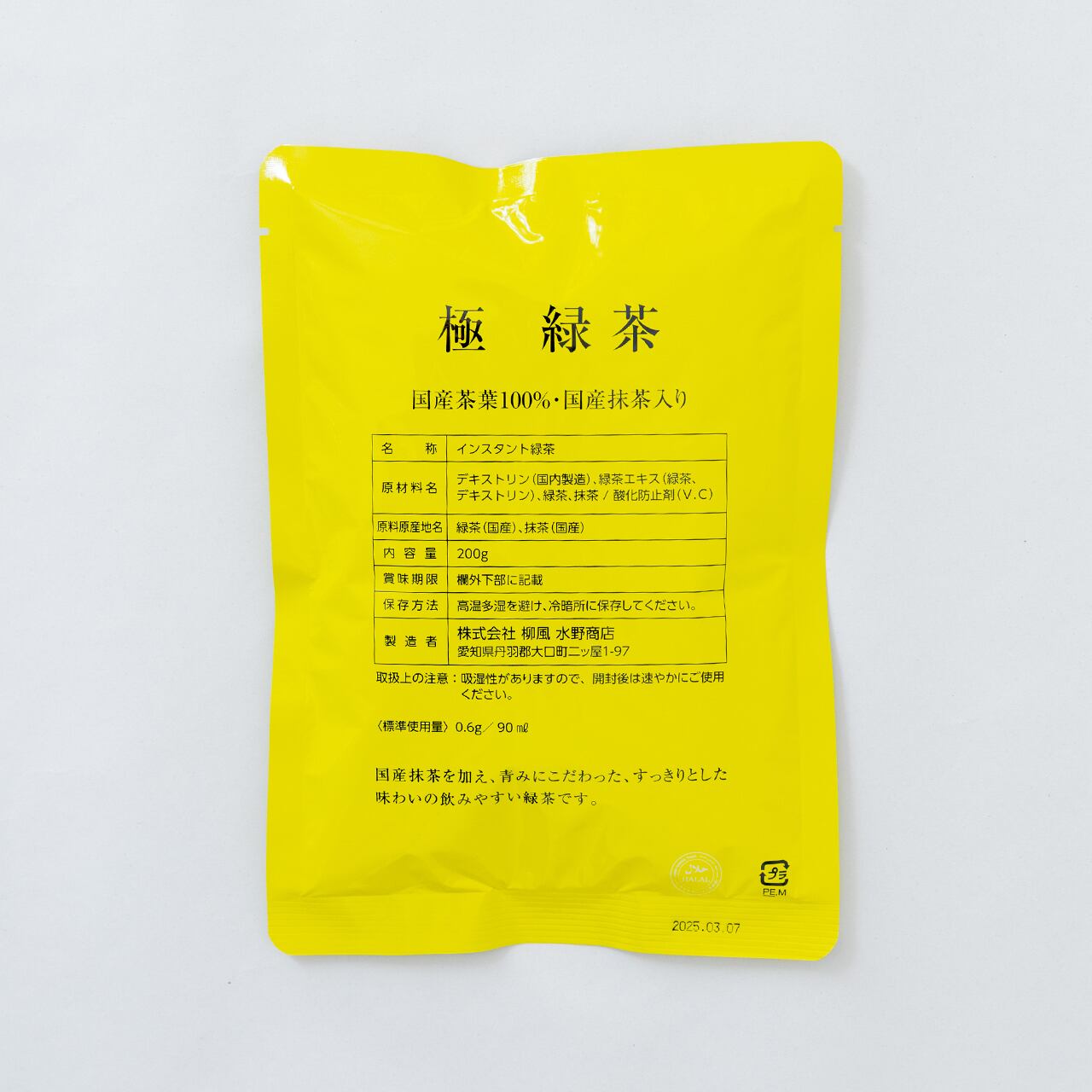 ・原材料名:デキストリン(国内製造)、緑茶エキス(緑茶、デキストリン)、緑茶、抹茶/酸化防止剤(V.C)
